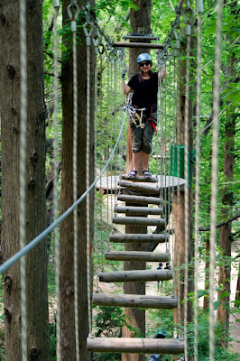 Crawling through barrels, walking a tightrope (always wanted to), balancing on tiny pieces of wood and hopping to the next tiny piece in addition to going on your zip-line and pulling yourself up once you "land" on the green mattress. SO MUCH FUN!